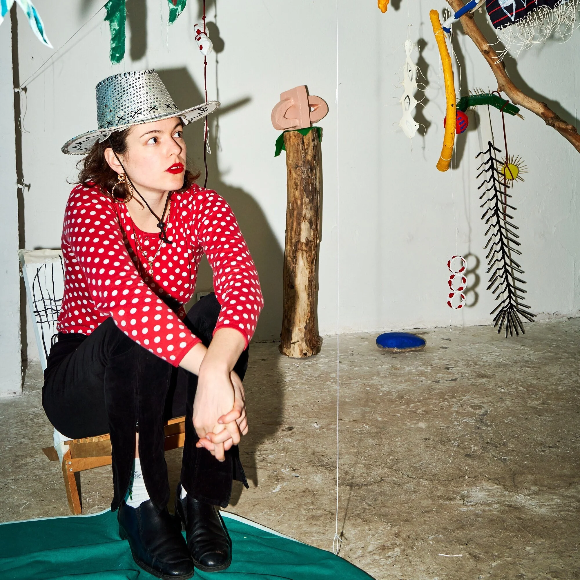 Fleur De Roeck leidt de workshop De Fantastische Installatie. Ze maakt spontane, kleurrijke werken die variëren van schilderijen tot objecten en sculpturen. Haar installaties bestaan uit verzamelde objecten zoals stenen, stukken schors, tapijten en nog veel meer.