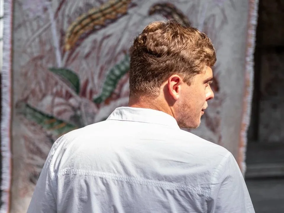 Thomas Renwart werkt in zijn praktijk vaak met textiel en laat hij zich inspireren door zijn ateliertuin.